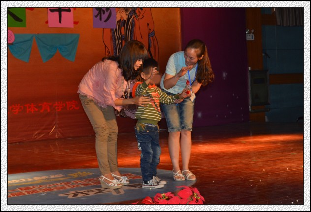 瑞曼小朋友把自己亲手做的礼物送给各位领导