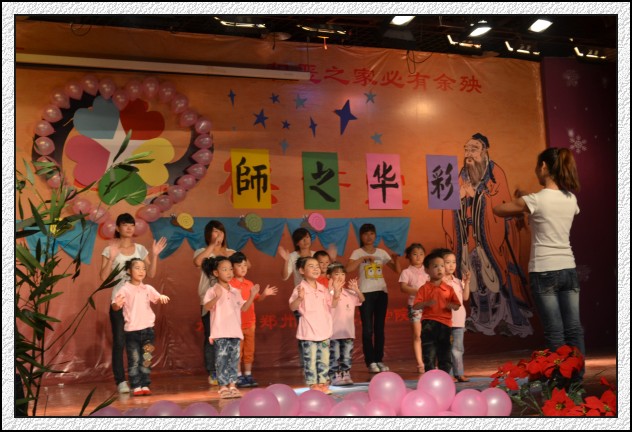 金拇指幼儿园的小朋友在表演节目,向老师献礼