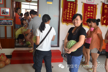 2014年8月5日上午,河南省福兴儿童公益基金会联合河南省孝行中原义工联盟来到瑞曼来看望我们的“小星星”,并为孩子们送来了大西瓜和礼物。