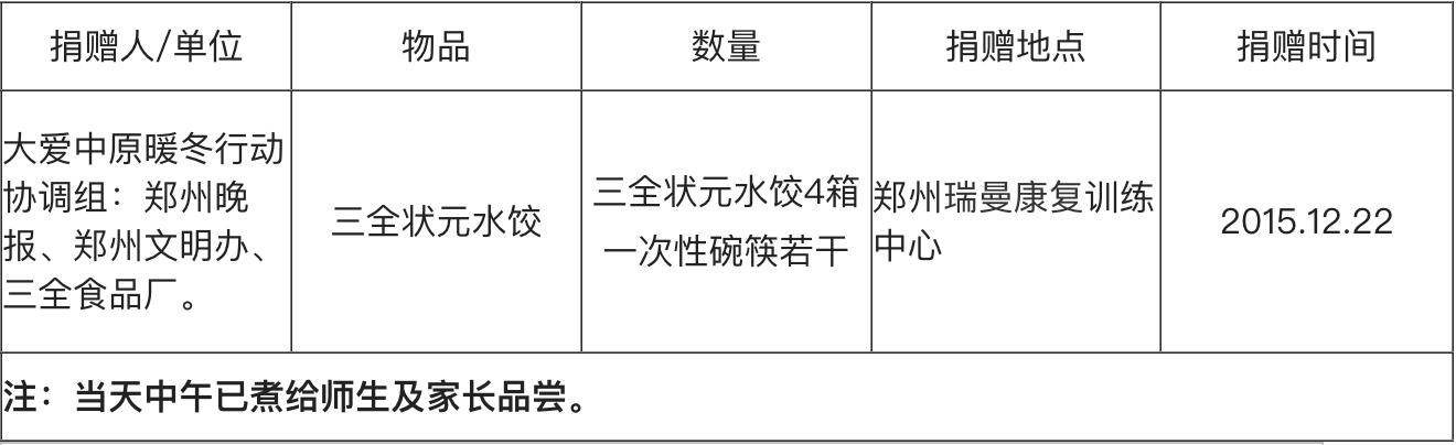 网站首页 > 爱心捐赠 > 大爱中原暖冬行动协调组为瑞曼送来了冬至饺子