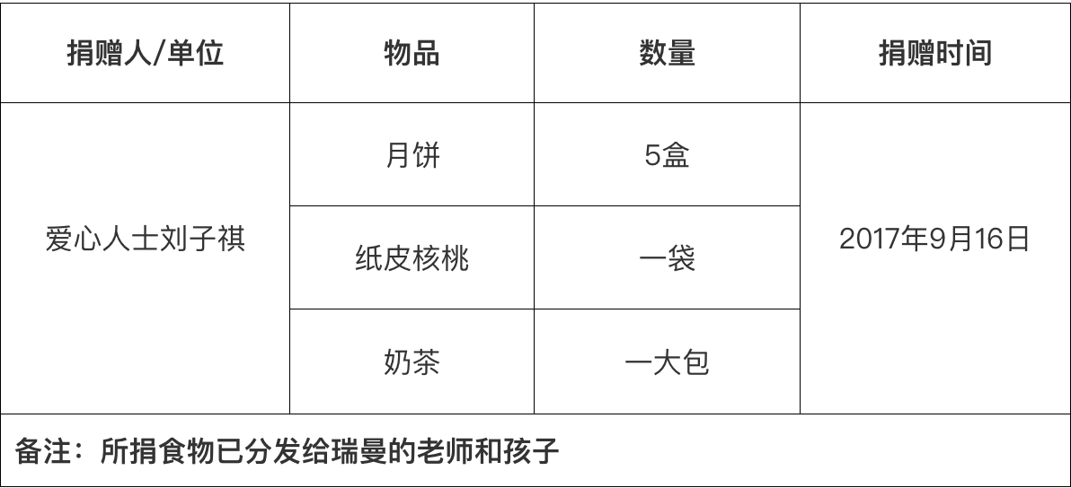 爱心人士刘子祺为瑞曼捐赠物品 - 瑞曼语训