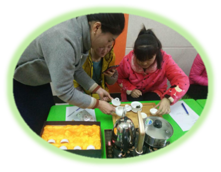 经过老师的详细讲解和示范后,家长们开始自己动手操作泡茶,一回生二回熟,各位家长通过两三次的操作以后,都能泡出香气扑鼻的茶来,这是来自台湾阿里山的乌龙茶,此时此刻整个教室充满了茶香的味道,清香淡雅,让人流连忘返。