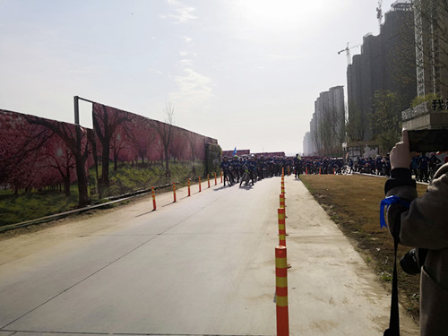 授旗仪式完毕后,骑友团队伍由亚星观邸浩浩荡荡向终点樱桃沟建业足球小镇出发,震撼的场面一路上吸引了无数的目光。