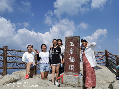 第二天早上我们一起又去爬了尧山山,好久没有这样运动了,起初兴致高昂,连跑带爬很带劲,没过多久就不行了,汗出来了,喘着气爬着,陌生的路让人心里没了底因为想不到前面的路还有多远,开始追问下山的人路还有多远,他们总会说不远了,自已也就有了信心,坚定了信念,一定要亲自爬上去看到那美丽的风景,就这样我们坚持了下来。虽然感觉有点累,不过还是很开心,也有点小感触。在未知的路上,永远不知道前面有什么,只有自己走过了才会明白。就像人生的路一样,路途中定会遇到很多的人,听到很多的有趣故事,上山的人要是问下山的人这路还有多远下山的人总会说不远了,结果自己爬上去的时候总觉得很远,通过这次爬山,大自然给我的启示很多,我爱大自然。