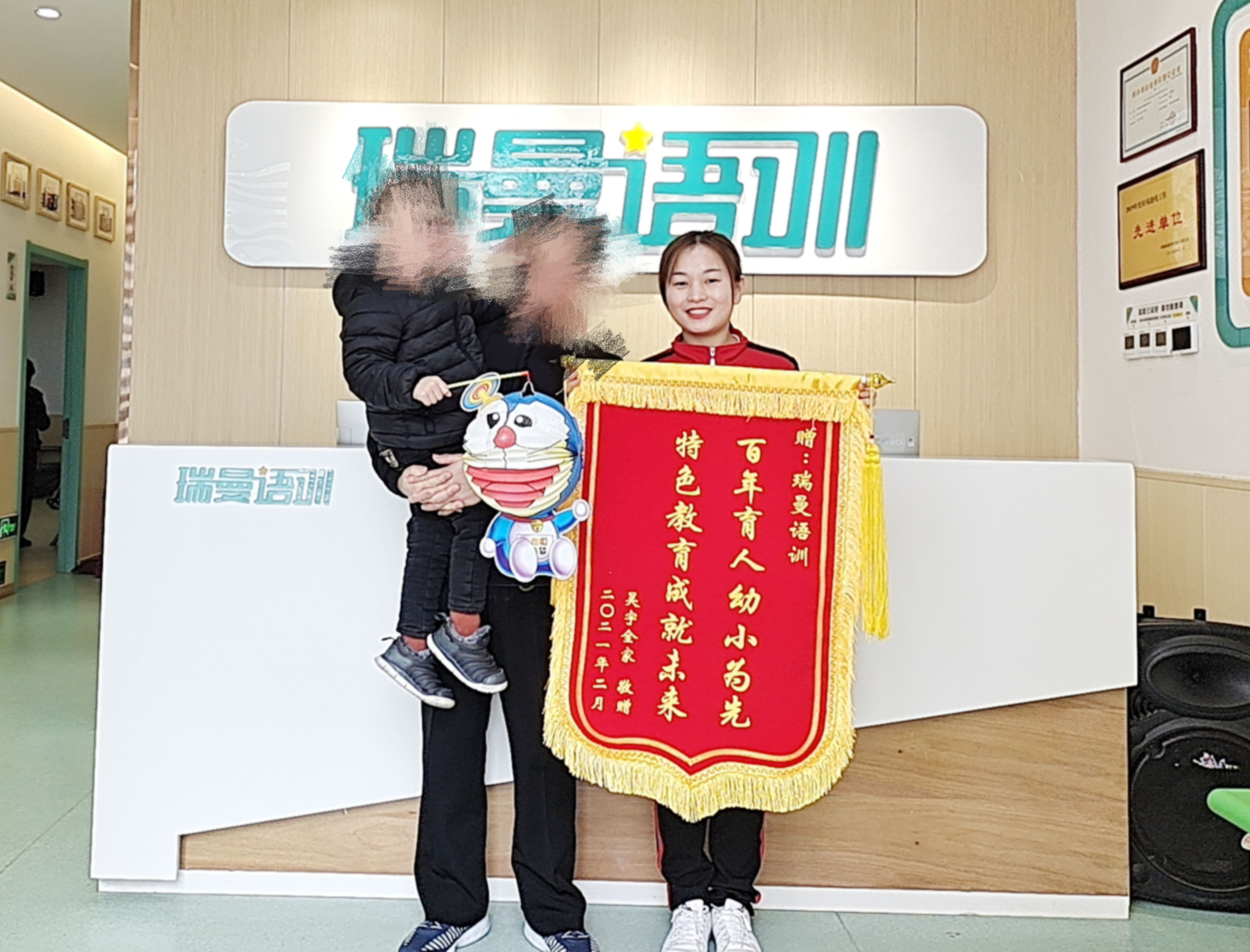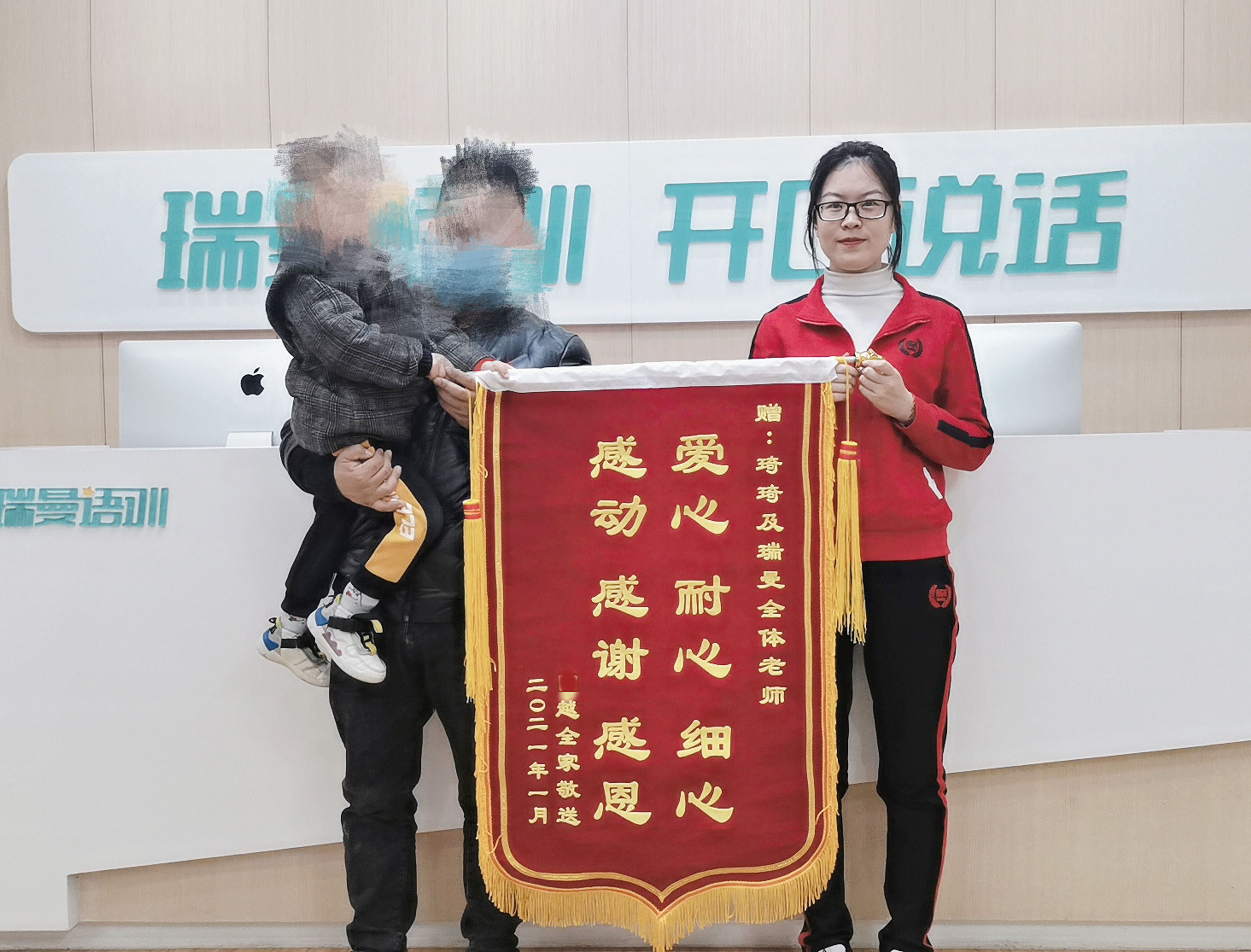 记录瑞曼的康复成功案例和家长送锦旗的信息。
