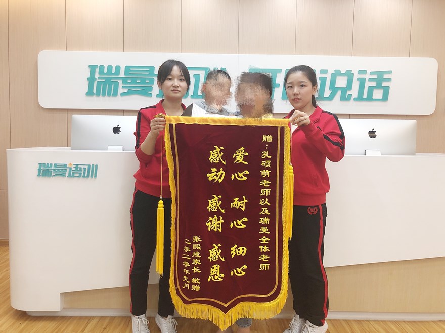 记录瑞曼的康复成功案例和家长送锦旗的信息。