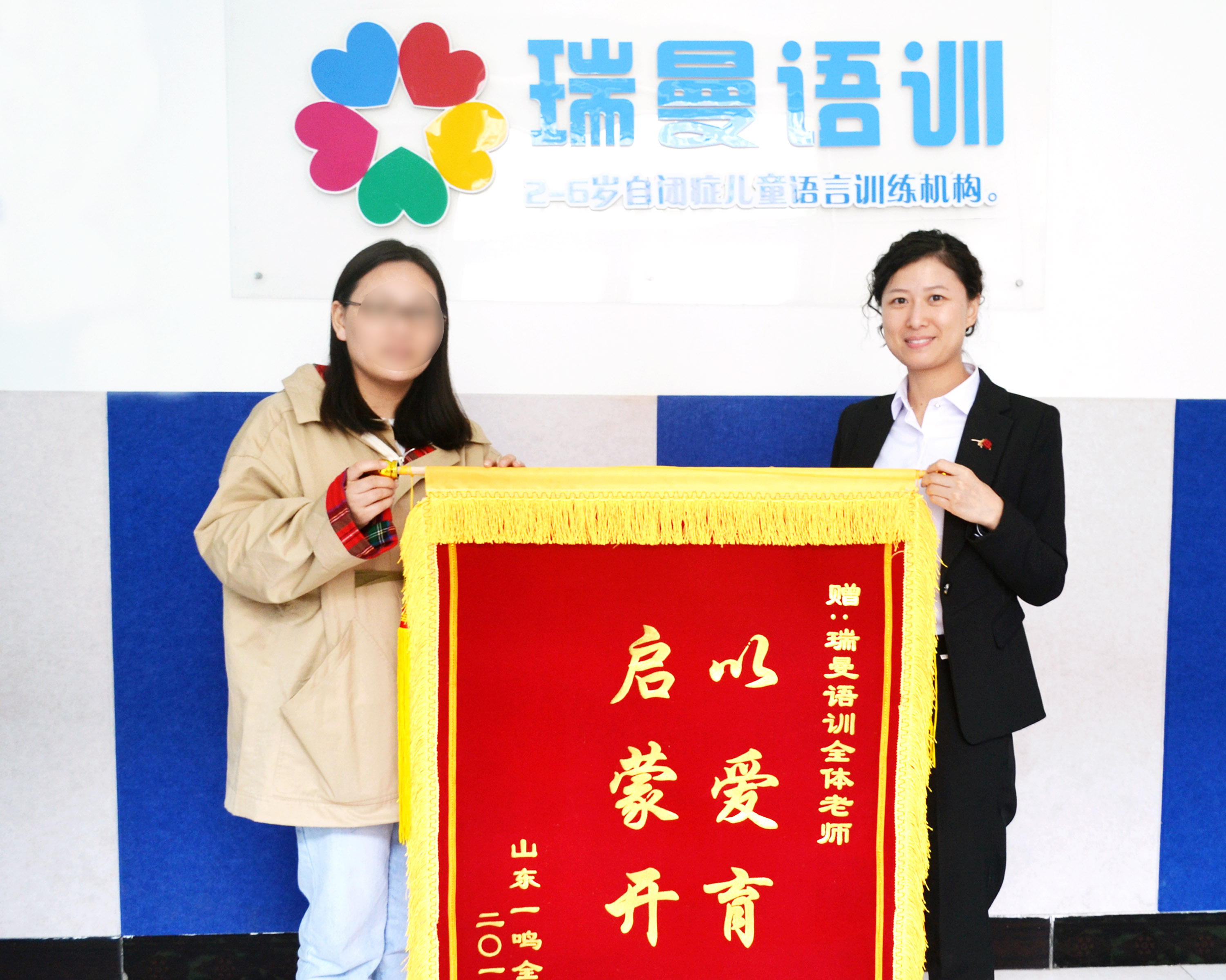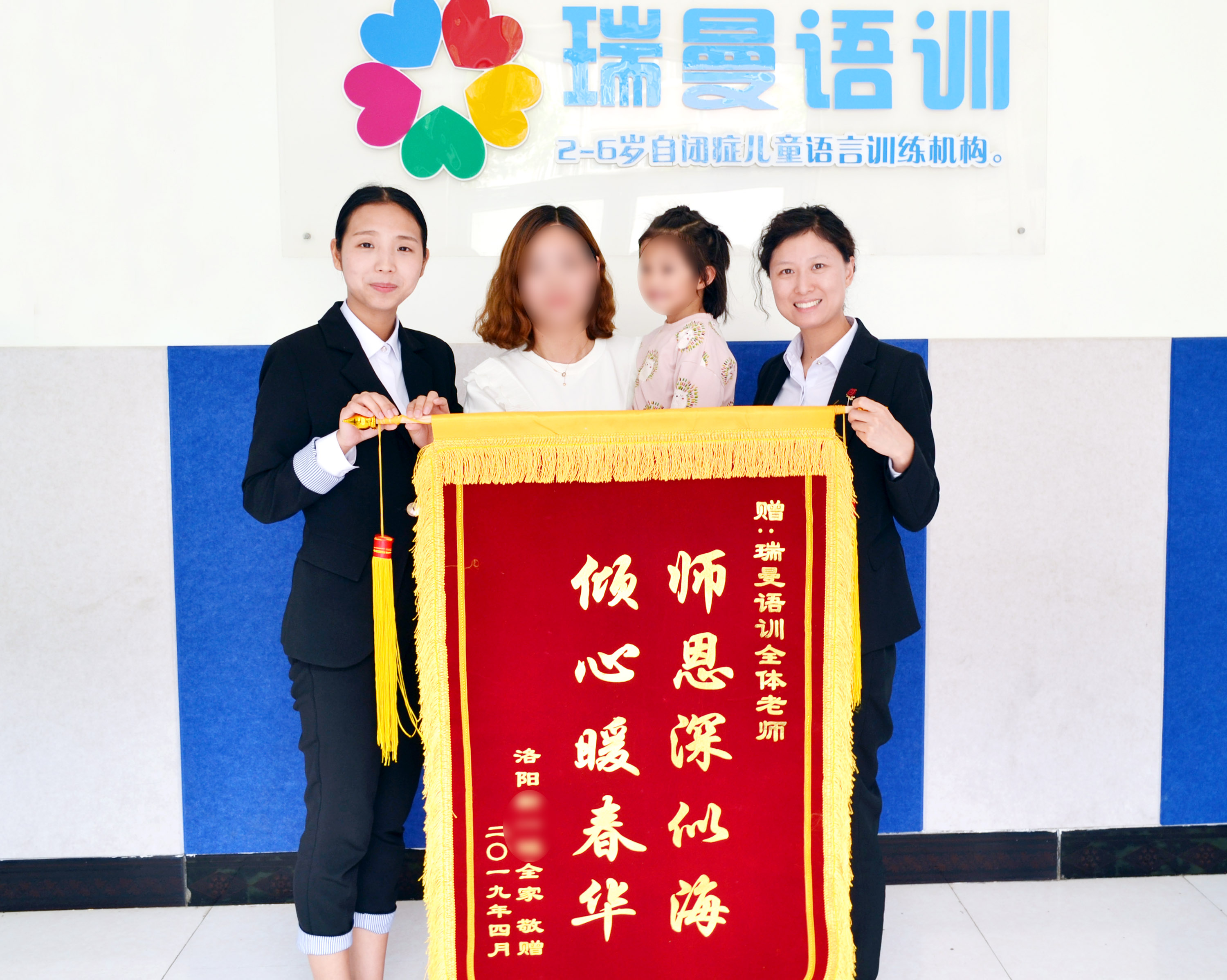 记录瑞曼的康复成功案例和家长送锦旗的信息。