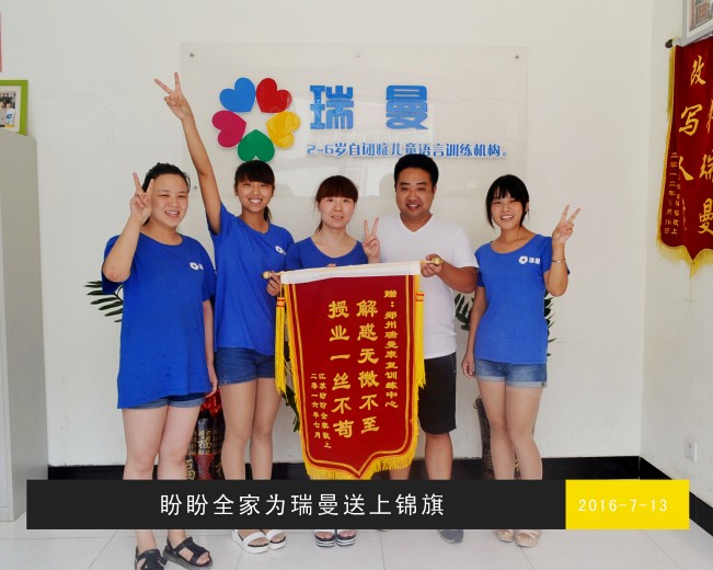 记录瑞曼的康复成功案例和家长送锦旗的信息。