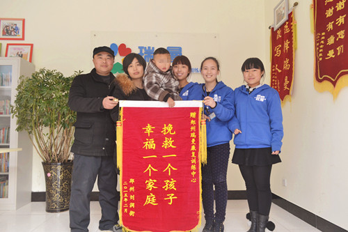 记录瑞曼的康复成功案例和家长送锦旗的信息。