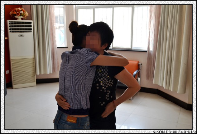 榕榕妈妈和文文老师深情拥抱以表谢意
