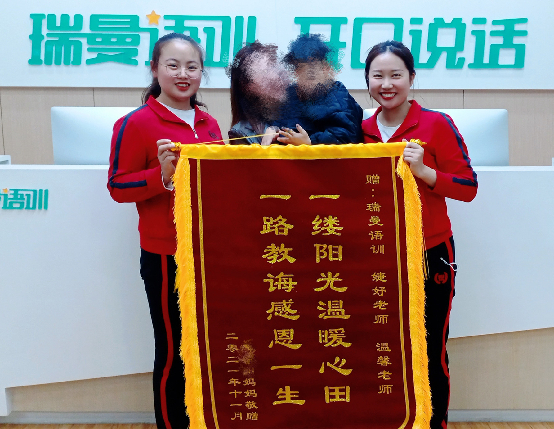 阳阳全家为瑞曼送来锦旗