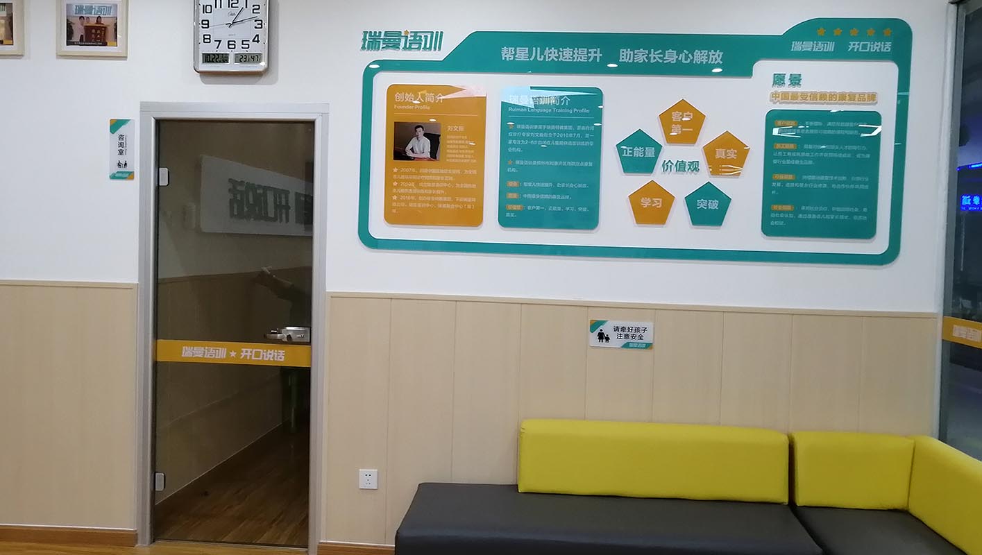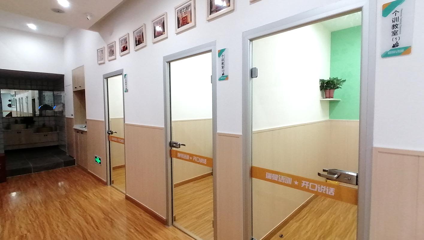 瑞曼语训二七区校区2019年8月开工建设,室内训练面积300平,为了给孩子家长更优质的体验和课程,二七中心设备服务全面升级,设有感统教室1个,个训教室8个,班级教室1个,内部装修采用柔色调,无论孩子、家长还是老师都能在这样舒适的环境中身心愉悦。二七中心真正实现"一孩一师一室"的个训模式,让孩子在丰富多彩的课程中能力全面快速提升。