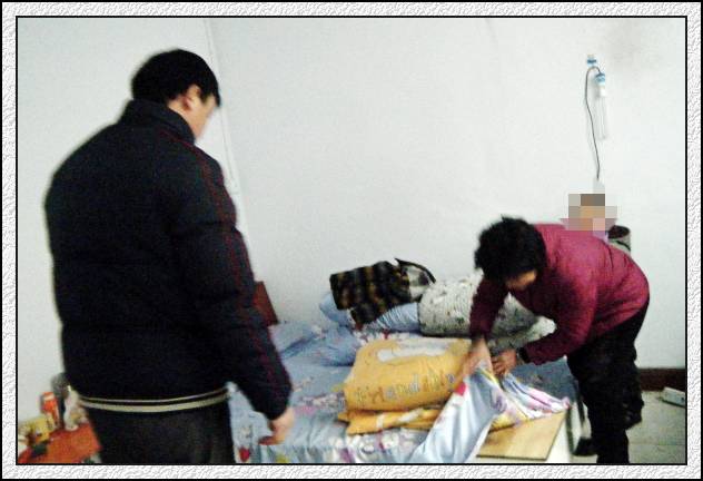 2011年2月28日上午,大雪突降,气温骤降。瑞曼刘主任带着中心教学管理人员,冒着大雪,为林林和小道家送去了御寒的被褥。