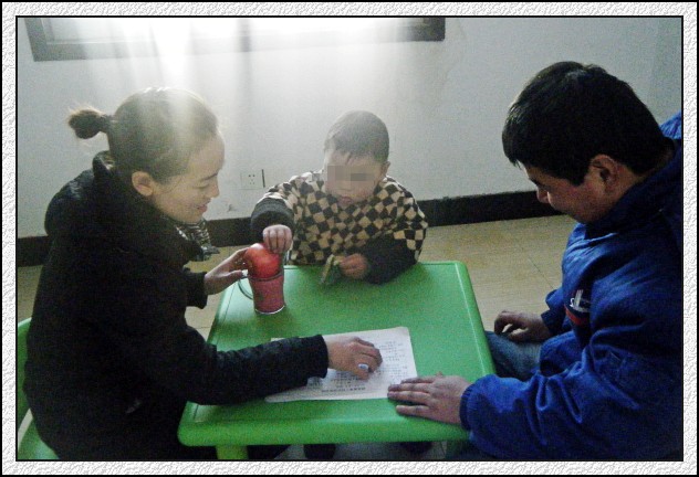 2011年3月31日,文道妈妈受中心邀请,参与文道3月份个别化训练目标考核。