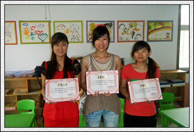 7月8日,在瑞曼教育一楼综合教室,获得2010-2011 “瑞曼优秀教师”称号的3位教师张丹丹、冀雪艳、张秋雯,在所有孩子和家长朋友的见证下,接受了中心颁发的荣誉证书。