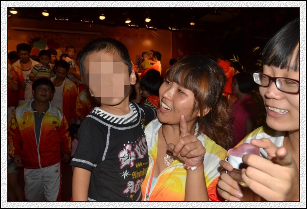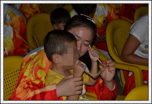 瑞曼小朋友和体院志愿者在研究怎样带框架眼镜会更潮