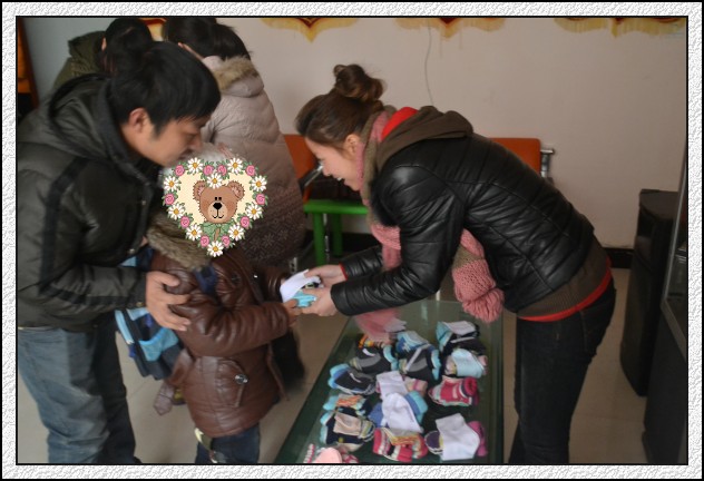 瑞曼老师把手套和袜子发给我们的小雨人