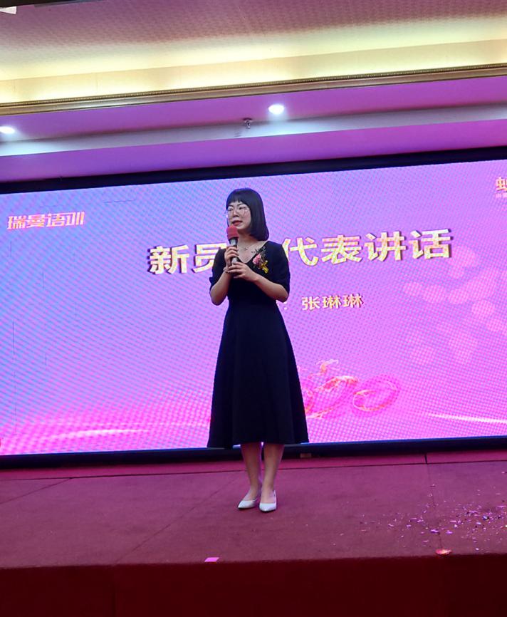 9:30,瑞曼语训10周年庆典正式拉开序幕,青春活力的开场舞给大家带来了一段美妙的享受。精彩的视觉享受之后,我们邀请了蓝帆地产集团李国智先生、瑞曼新员工代表张琳琳、瑞曼学生家长王强先生和瑞曼二部主任蒋赛上台致辞发言。