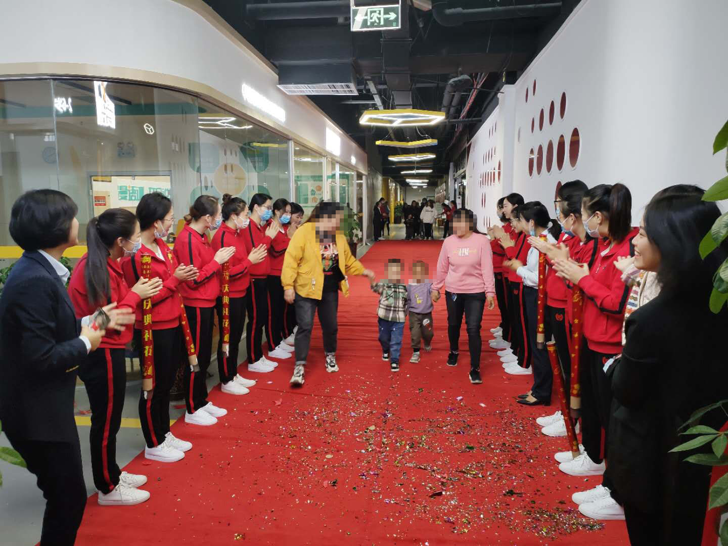 欢迎宝贝们来到二七中心四部。宝贝们在妈妈的陪伴下努力走好红毯的每一步。