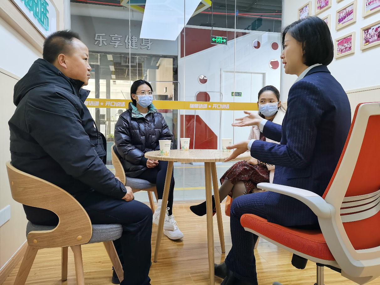 上午9点,林海教育志愿者来到了我们瑞曼语训二七校区,教学二中心主任张秋雯接待志愿者,并向志愿者介绍了瑞曼的文化使命、教学服务与模式等,让志愿者对瑞曼语训的发展过程和定位更加明确精准。同时张秋雯主任向我们的志愿者讲解了自闭症,以及自闭症孩子的行为表现等,让志愿者对这群特殊的孩子有了更多的了解与认识。
