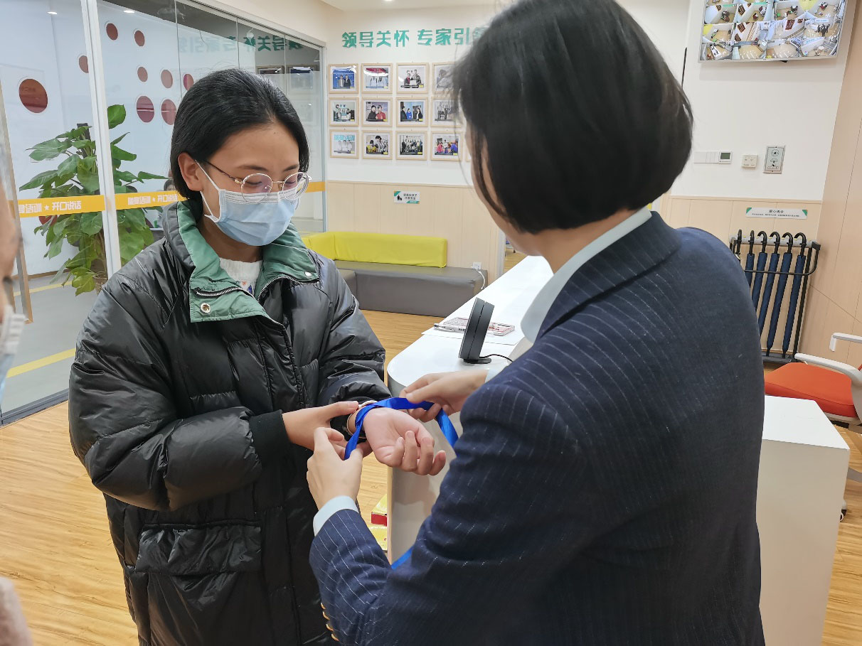 随后,张秋雯主任带领志愿者们观看孩子们的上课模式。