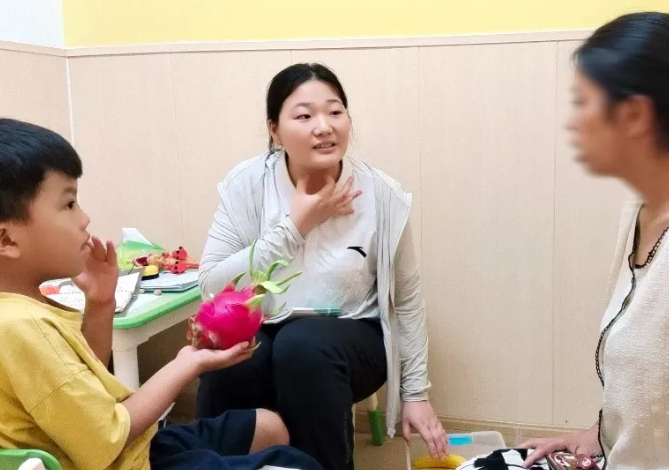 荟荟老师发现,俊俊的语言能力较弱,需要加强唇肌力量和舌肌的控制,以及改善气息控制。让人欣慰的是,俊俊特别积极配合老师进行训练,他也非常渴望提高自己的语言能力。为了帮助俊俊提高语言清晰度,荟荟老师根据儿童语言发展特点制定了螺旋式上升的语言训练计划。