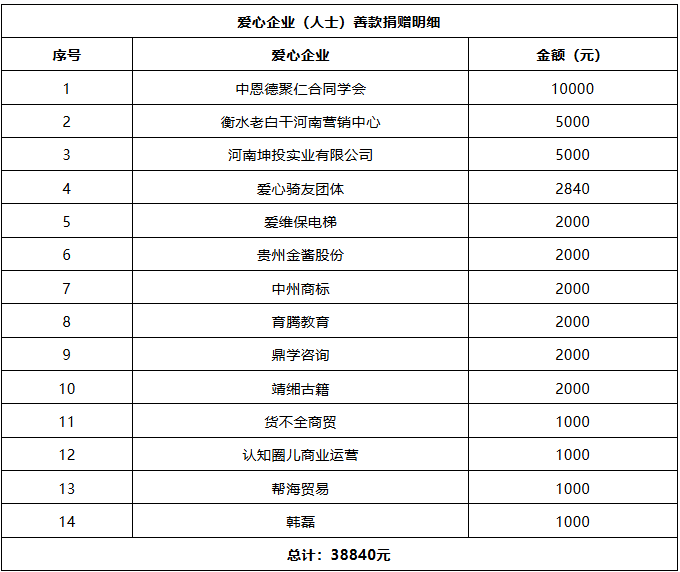 尊敬的各位爱心人士、企业代表: