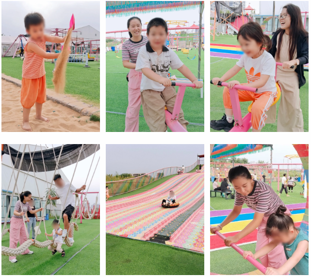 到达游乐园后,阳阳老师先教孩子们认识了游乐设施,又一次讲了外出活动的注意事项,孩子们就开始游玩喽!小朋友要做彩虹滑道,那就和爸爸、妈妈一起动手把轮胎拉上去吧!彩虹滑道好高,坡道好陡,孩子们在爸爸、妈妈的保护下,表现的很勇敢呦!有的小朋友喜欢荡秋千,有的小朋友喜欢玩沙子,那就尊重孩子的意愿,陪孩子一起玩过瘾吧!