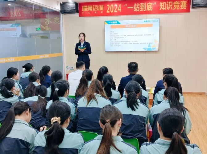 为了激发瑞曼教师团队的学习热情并提升她们的专业素养与综合能力,2024年10月26日上午,瑞曼语训成功举办了一场既专业又充满趣味的“一站到底”知识竞赛活动。上午8点20分,活动准时开始,全体人员有序就座,主持人刘婷老师介绍了比赛的各项规则及裁判成员:由刘文振理事长担任总裁判,资深教师潘晨飞老师则出任裁判助理,共同确保比赛的公正与顺利进行。