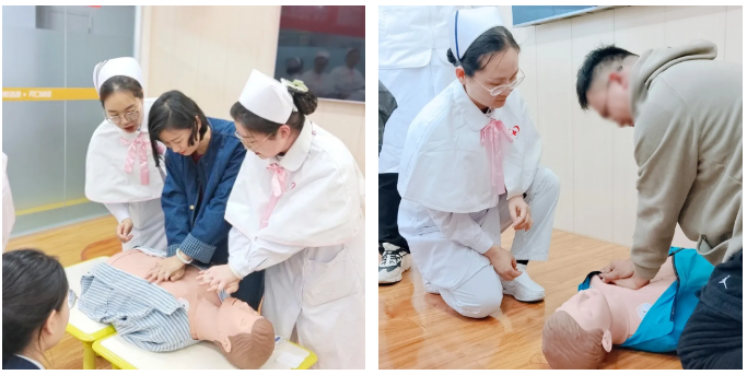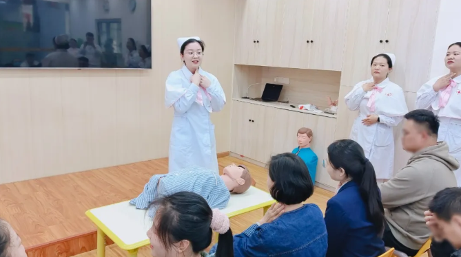 孙艺萌护士以现场演练的方式,为我们讲解了心肺复苏的注意事项、操作步骤和重点内容,随后组织家长们进行演练。医护人员不断纠正家长们各环节的姿势、手法,确保动作标准、力度到位、节奏准确。宣讲结束后,家长们就孩子们的日常护理及疾病应对措施提出了一些疑问。对此,在场的医护人员进行了详细解答。