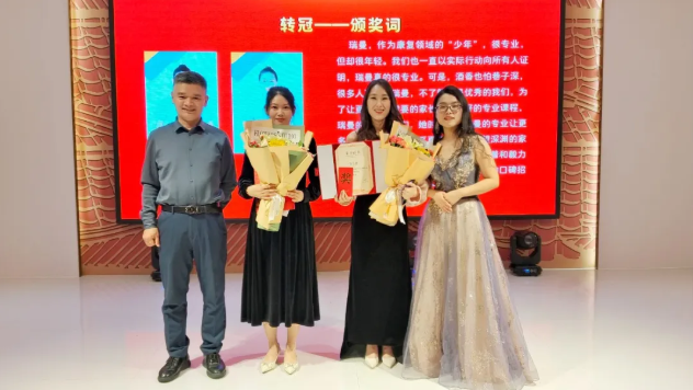 刘瑞娟老师和刘格格老师以在小组课教学中的杰出表现摘得“消冠”奖项,优秀是她们的代名词,个训、小组、班级样样精通,无所不能,她们用行动告诉所有人,是金子,在哪里都会发光。荣获卓越领导奖的是张秋雯主任,李静主任,蒋赛督导,孙立新督导。她们不管在任何岗位,都能够以最高的标准,展现自己的人生价值,她们时刻心系孩子、家长和伙伴,带领瑞曼,在康复领域做出不俗的成绩。我们再次以最热烈的掌声和最深切的敬意,为这些优秀的伙伴们喝彩!