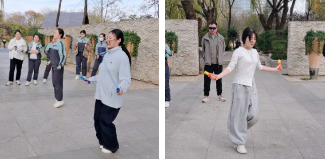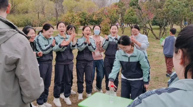 从跳绳的速度比拼到拔河的同心协力,从平板支撑的咬牙坚持到夹球蹦跳的灵活博弈,再到投立矿泉水瓶的新鲜挑战,这场趣味运动会没有输赢之分,只有全力以赴的热爱与团结。赛场上,老师们放下工作的疲惫,尽情释放活力;赛场下,队友们互相鼓劲、彼此喝彩,每一次击掌、每一声加油,都让团队的凝聚力在不知不觉中升温。