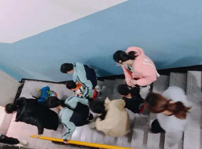 随着尖锐的警报声响起,安全逃生演习正式拉开序幕。 老师带着孩子们,弯腰低姿沿墙壁快速前行,严格按照预设疏散路线有序撤离。所有参与人员均安全抵达室外指定集合点,随后各部门负责人快速清点人数、上报情况,整个过程紧张有序、衔接顺畅。
