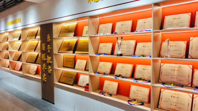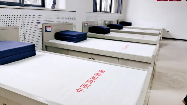 除了装备展示,我们还参观了消防站的荣誉室和生活区。荣誉室里挂满了锦旗和奖状,每一面锦旗、每一张奖状背后,都藏着消防员们守护一方平安的动人故事。而生活区的景象更是让人印象深刻:床铺整理得整整齐齐,被子叠成了标准的“豆腐块”,厨房一尘不染、物品摆放井然有序。有家长好奇询问这里是否平时做饭,消防员叔叔笑着回答,队员们的一日三餐都在这里解决,整洁的环境也是他们高标准、严要求的体现。