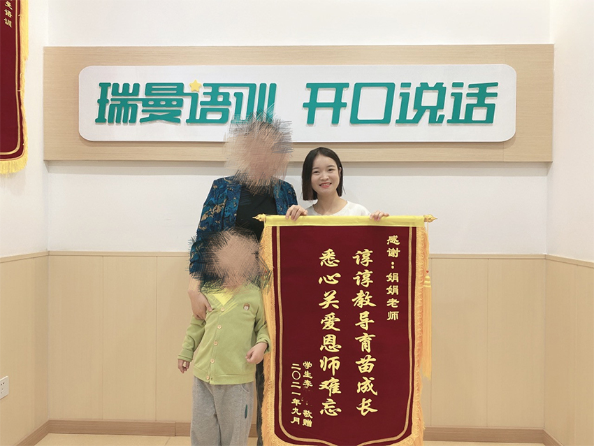 记录瑞曼的康复成功案例和家长送锦旗的信息。