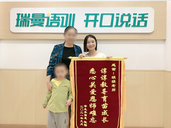 记录瑞曼的康复成功案例和家长送锦旗的信息。