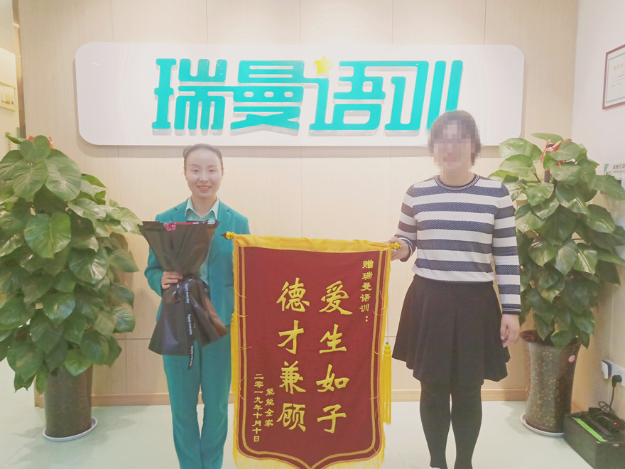 记录瑞曼的康复成功案例和家长送锦旗的信息。
