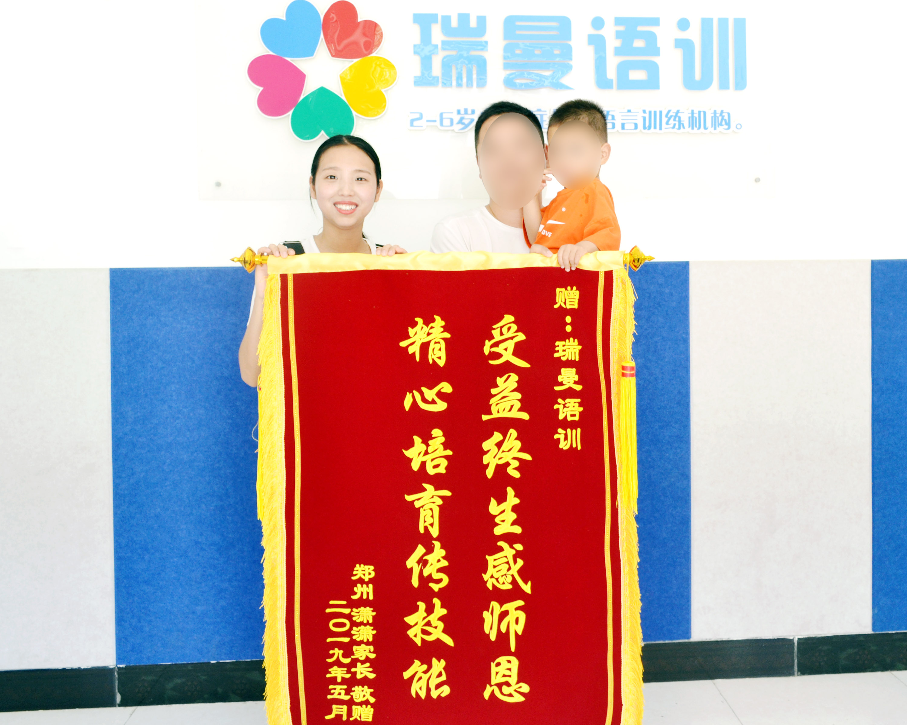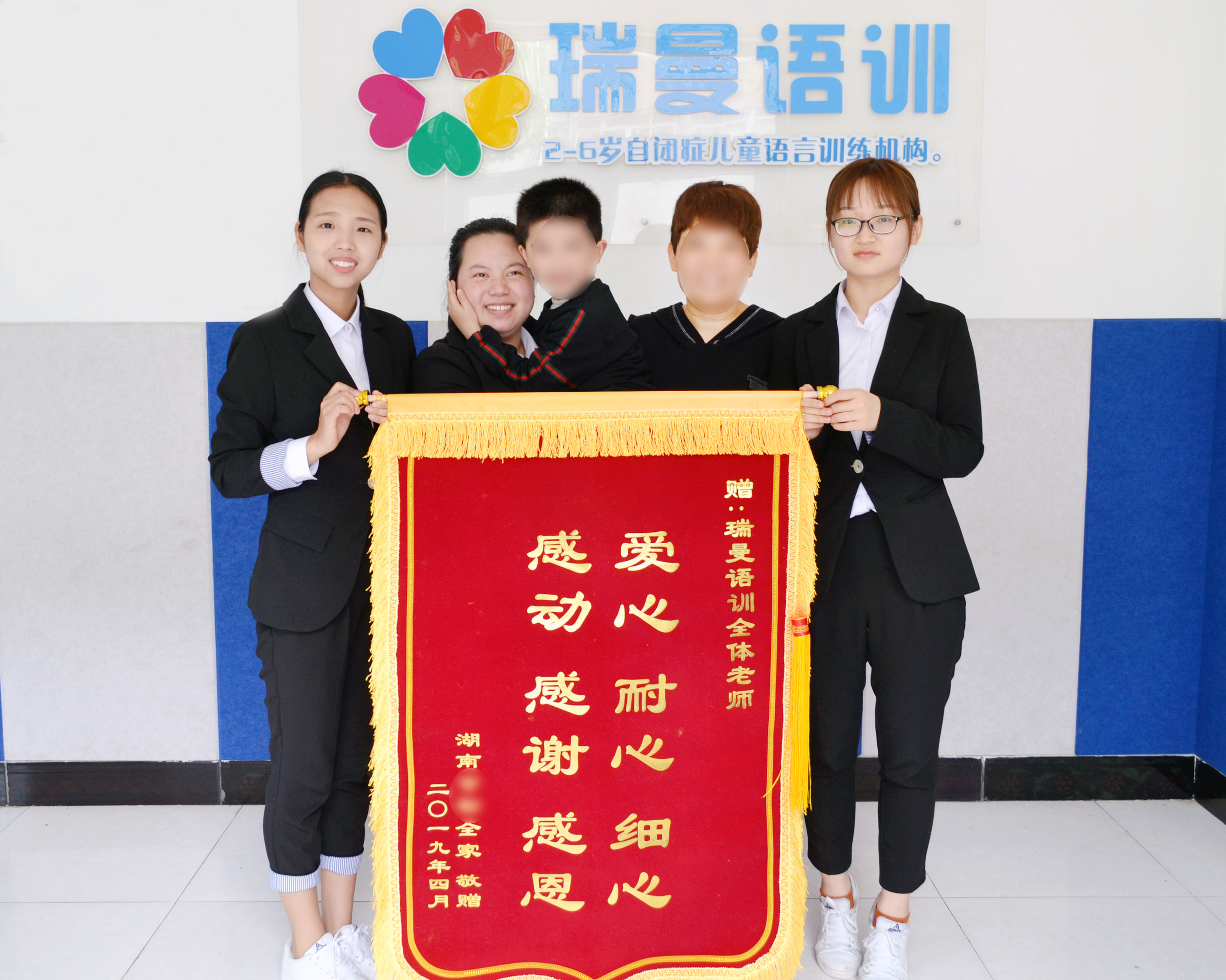 记录瑞曼的康复成功案例和家长送锦旗的信息。