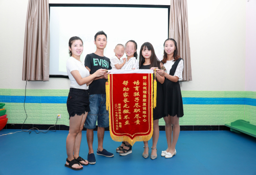 记录瑞曼的康复成功案例和家长送锦旗的信息。
