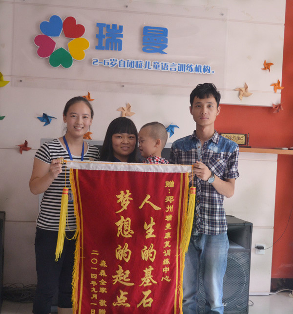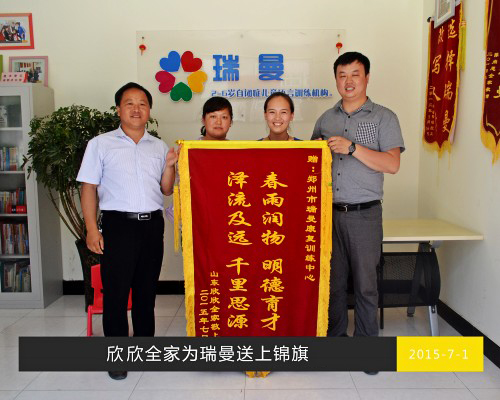 记录瑞曼的康复成功案例和家长送锦旗的信息。