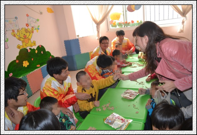 我们都知道,自闭症又称孤独症,是一种广泛发育障碍性的疾病,患儿的主要表现就是语言障碍和行为障碍等等。虽然我们的小雨人不能像正常的孩子那样和志愿者们进行良好的沟通,但这并不妨碍我们瑞曼小雨人和志愿者之间建立起深厚的感情!