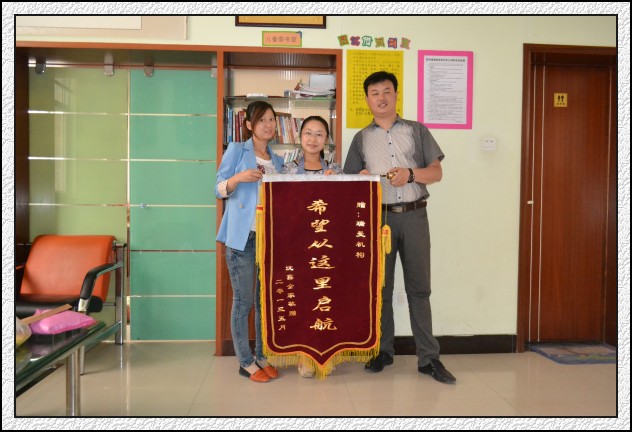 鑫鑫妈妈向瑞曼赠送锦旗