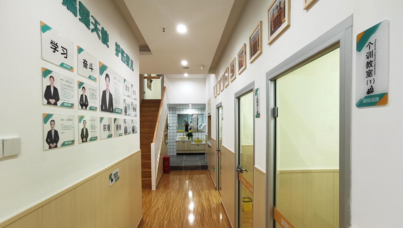 瑞曼语训二七区校区2019年8月开工建设,室内训练面积300平,为了给孩子家长更优质的体验和课程,二七中心设备服务全面升级,设有感统教室1个,个训教室8个,班级教室1个,内部装修采用柔色调,无论孩子、家长还是老师都能在这样舒适的环境中身心愉悦。二七中心真正实现"一孩一师一室"的个训模式,让孩子在丰富多彩的课程中能力全面快速提升。